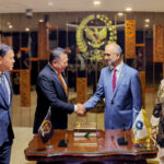 SUARAINDONEWS.COM, Jakarta-Ketua MPR RI Bambang Soesatyo bersama Presiden the Global Council for Tolerance and Peace/GCTP (Dewan Toleransi dan Perdamaian Global) H.E Mr. Ahmed Bin Mohamed Aljarwan dan Direktur Wahid Institute yang juga Pendiri GCTP Yenny Wahid berbincang usai menandatangani nota kesepahaman tentang Penyebarluasan Budaya Toleransi dan Perdamaian di Ruang Kerja Ketua MPR RI, Gedung Nusantara III Komplek MPR RI/DPR RI/DPD RI, Jakarta, Selasa (8/8/2023).