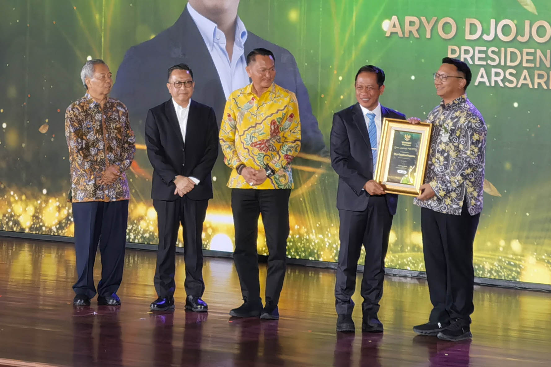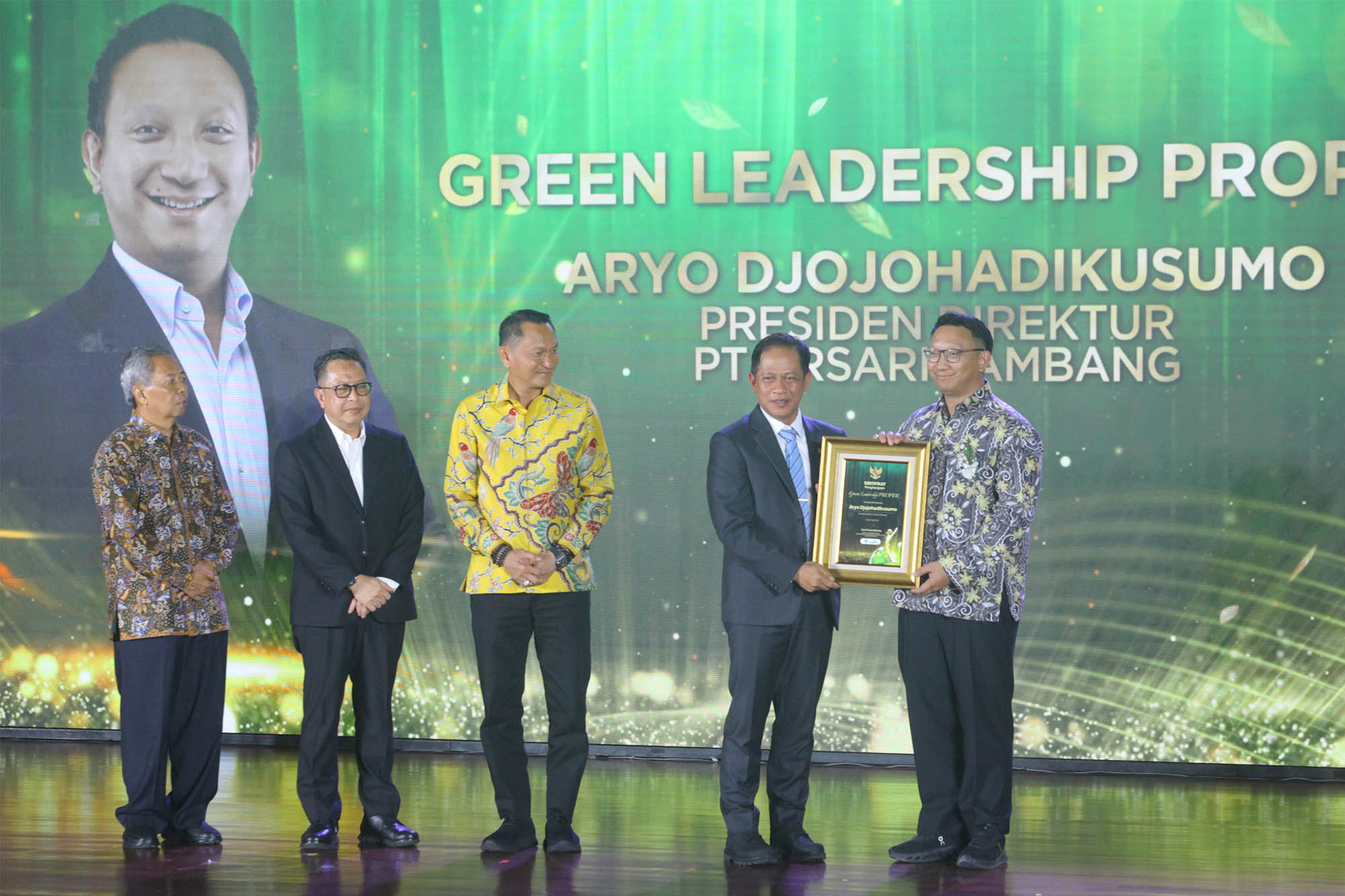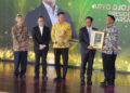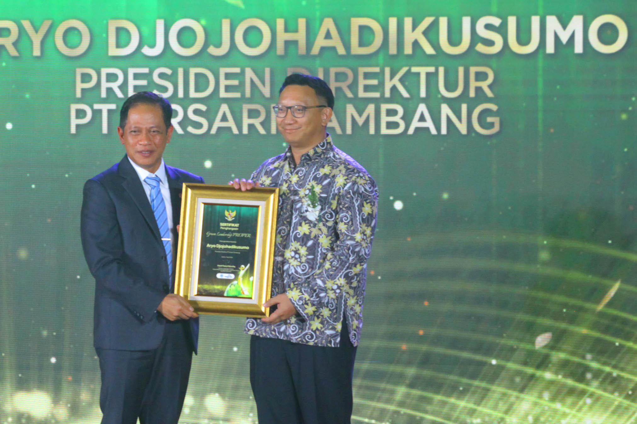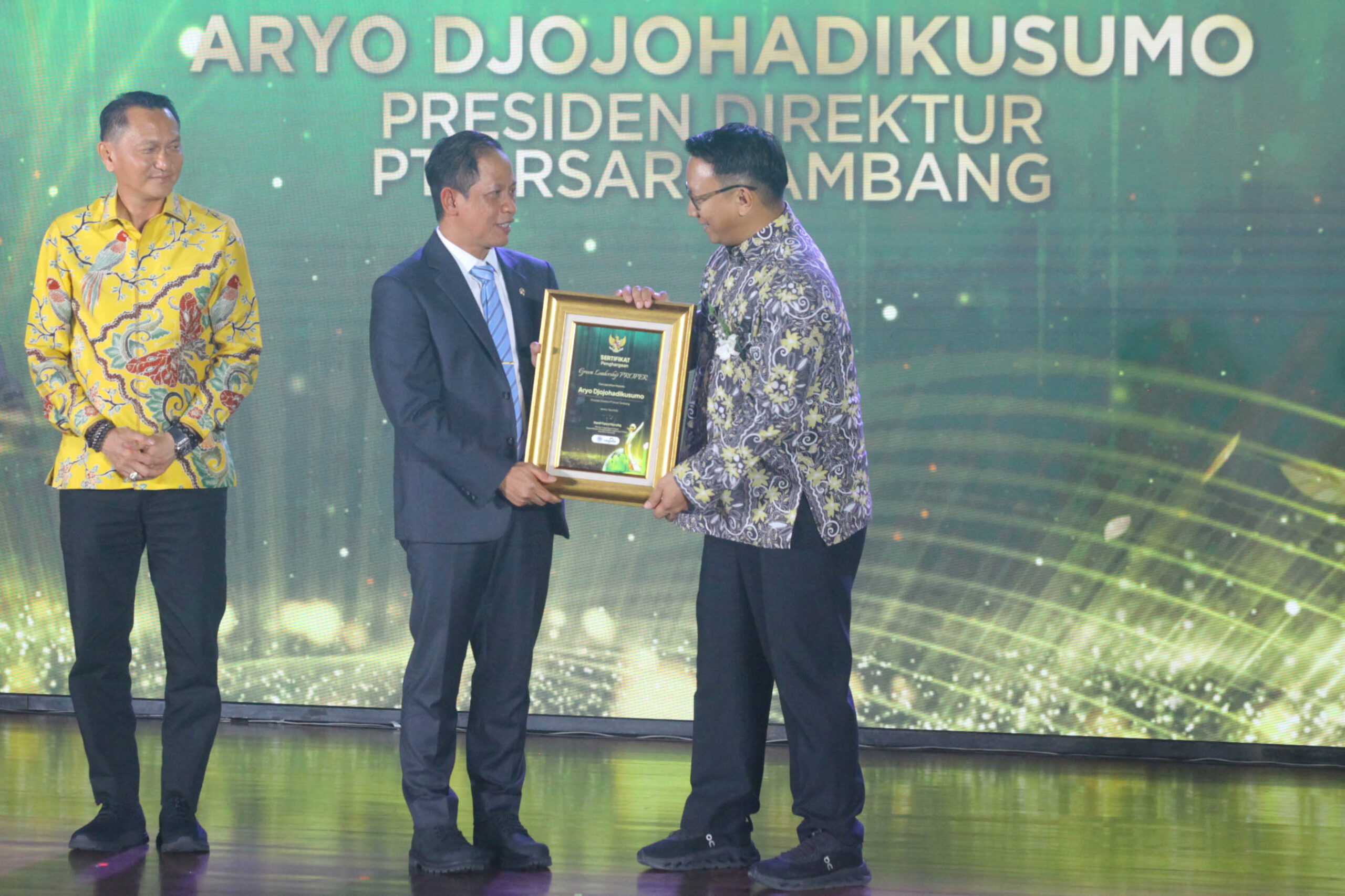 SUARAINDONEWS.COM, Jakarta – Presiden Direktur PT Arsari Tambang, Aryo P. S. Djojohadikusumo (kanan), menerima penghargaan PROPER Emas dan Green Leadership PROPER yang diserahkan langsung oleh Menteri Lingkungan Hidup, Hanif Faisol Nurofiq (kedua kanan), dalam acara Anugerah Lingkungan PROPER di Sasono Langen Budoyo, kawasan Taman Mini Indonesia Indah (TMII), Jakarta, Selasa (7/4/2026).