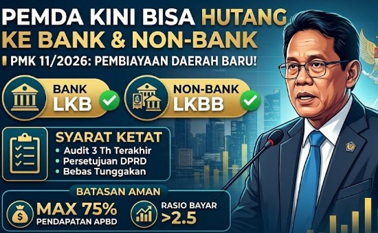 SUARAINDONEWS.COM, Jakarta – Pemerintah lewat Kementerian Keuangan Republik Indonesia resmi membuka opsi baru pembiayaan daerah. Lewat PMK Nomor 11 Tahun 2026, pemda kini bisa mengajukan pinjaman melalui lembaga keuangan bank (LKB) maupun non-bank (LKBB).