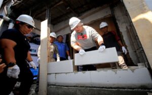 SUARAINDONEWS.COM, Bogor-Presiden Direktur Prudential Indonesia Michellina L. Triwardhany (kedua kiri), Head of Programme Operations Habitat for Humanity Indonesia Rudi Nadapdap (kiri), Chief HR & Community Investment, Prudential Syariah Indrijati Rahayoe dan Kepala Desa Gunung Putri Daman Huri berbincang saat peletakan batu pertama pembangunan rumah warga disela acara peresmian program Desa Maju Prudential di Desa Gunung Putri, Kabupaten Bogor, Jawa Barat, Sabtu (19/08/2023). Prudential Indonesia dan Prudential Syariah berkomitmen untuk memperluas jangkauan perlindungan kepada lebih banyak keluarga di Indonesia untuk mewujudkan keluarga yang sehat, terlindungi, dan lebih sejahtera. Didukung oleh Prudence Foundation dan Eastspring Indonesia, serta bekerja sama dengan Habitat for Humanity Indonesia, Prudential Indonesia dan Prudential Syariah meresmikan program Desa Maju Prudential di Desa Gunung Putri, Kabupaten Bogor, Jawa Barat yang mencakup pembangunan 15 rumah baru, renovasi 10 rumah, pembangunan 38 toilet individu dan 2 POSYANDU, serta renovasi 10 tempat usaha rumahan.