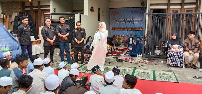 Dan pada kesempatan itu, DL Production turut mengundang puluhan anak yatim piatu dalam rangka tasyakuran kantor baru serta memberikan santunan. Sekaligus berharap penuh agar usaha ini bisa memberikan manfaat kepada masyarakat di seluruh Indonesia. Khususnya bisa memberikan informasi yang terbaik serta bermanfaat kepada semua pihak, pungkas Diana Limbong.