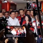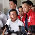 SUARAINDONEWS.COM, Jakarta-Ketua Umum Partai Gerindra Prabowo Subianto didampingi elite bersama Wakil Dewan Pembina PSI Grace Natalie, Ketua Umum PSI Giring Ganesha dan seluruah jajaran memberikan keterangan kepada awak media usai pertemuan di Jakarta. Rabu, (2/8/2023).