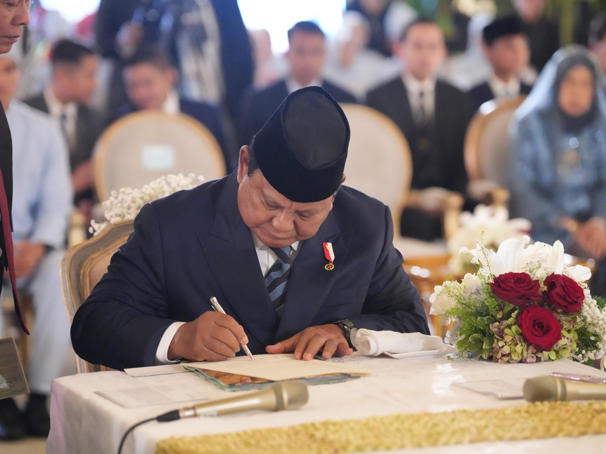 Prabowo hadir langsung menyaksikan momen sakral tersebut dan bertindak sebagai saksi dari pihak mempelai laki-laki.