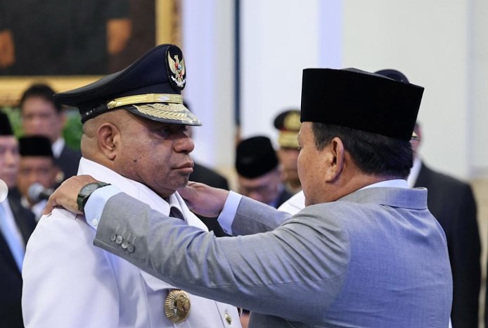 SUARAINDONEWS.COM, Jakarta — Presiden Prabowo Subianto resmi melantik Matius Derek Fakhiri dan Aryoko Alberto Ferdinand Rumaropen sebagai Gubernur dan Wakil Gubernur Papua periode 2025–2030. Prosesi pelantikan digelar di Istana Negara, Jakarta Pusat, pada Rabu (8/10/2025), dan disaksikan sejumlah pejabat tinggi negara serta perwakilan kementerian dan lembaga.