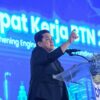 SUARAINDONEWS.COM, Jakarta – Menteri BUMN Erick Thohir berbincang dengan Direktur Utama BTN Nixon LP Napitupulu, Wakil Direktur Utama BTN Oni Febriarto Rahardjo, dan Wakil Komisaris Utama BTN Iqbal Latanro saat Rapat Kerja BTN 2025 di Jakarta, Jumat (3/1).