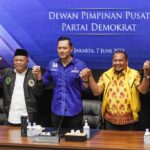SUARA INDONEWS.COM, Jakarta-Ketua Umum Partai Demokrat Agus Harimurti Yudhoyono (tengah) bersama dengan Ketua Umum Kornas Go Anies Sirajuddin Abdul Wahab (kanan) dan Ketua Umum Forum Kabah Membangun (FKM) Habil Marati (kiri) saat pertemuan antara Partai Demokrat dengan relawan Anies Baswedan Sekber Koalisi Kuning Ijo Biru (KIB) di DPP Partai Demokrat, Jakarta, Rabu (7/6/2023).