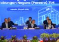 SUARAINDONEWS. COM, Jakarta – Direktur Utama PT Bank Tabungan Negara (Persero) Tbk, Nixon L.P. Napitupulu (tengah), berpose bersama Komisaris Utama BTN, Suryo Utomo, serta jajaran komisaris dan direksi lainnya usai Rapat Umum Pemegang Saham Tahunan (RUPST) Tahun Buku 2025 di Jakarta, Kamis (23/4).