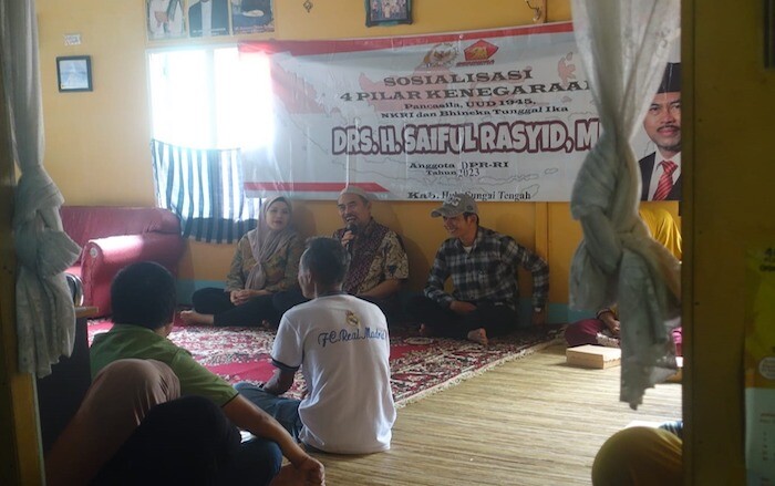 “Minimal di lingkungan Masyarakat ataupun orang terdekat kita dalam kehidupan sehari-hari guna menanamkan wawasan kebangsaan dan rasa cinta tanah air yang menjadi modal dasar dalam kehidupan berbangsa dan bernegara, ” ujar Saiful Rasyid saat memberikan Sosialisasi Empat Pilar MPR di desa birayang, Hulu Sungai Tengah, Kalimantan Selatan, Senin (6/3/2023).