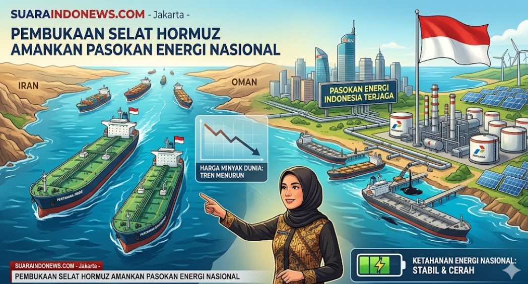SUARAINDONEWS.COM, Jakarta — Pengumuman Pemerintah Iran untuk membuka kembali Selat Hormuz sebagai rute pelayaran internasional menjadi sinyal kuat meredanya konflik di kawasan Timur Tengah. Ke depan, hal ini akan membuat prospek energi Indonesia semakin cerah.