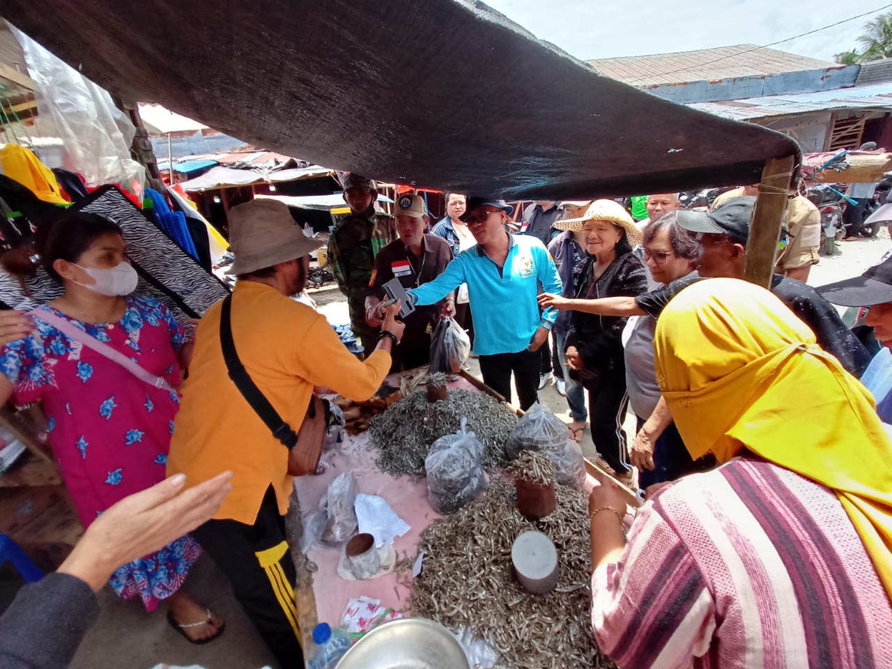 Selain berdialog dengan warga, rombongan juga meninjau kios bahan pokok dan lapak hasil tani. Ditemukan bahwa harga cabai rawit, sayuran, dan ikan di pasar Tompaso Baru relatif stabil dibanding bulan sebelumnya.