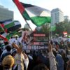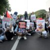 Aksi Demo #janganlupakanpalestina diiikuti oleh masyarakat dari berbagai organisasi untuk mengurangi penjualan produk-produk yang mendukung Israel sesuai fatwa MUI.