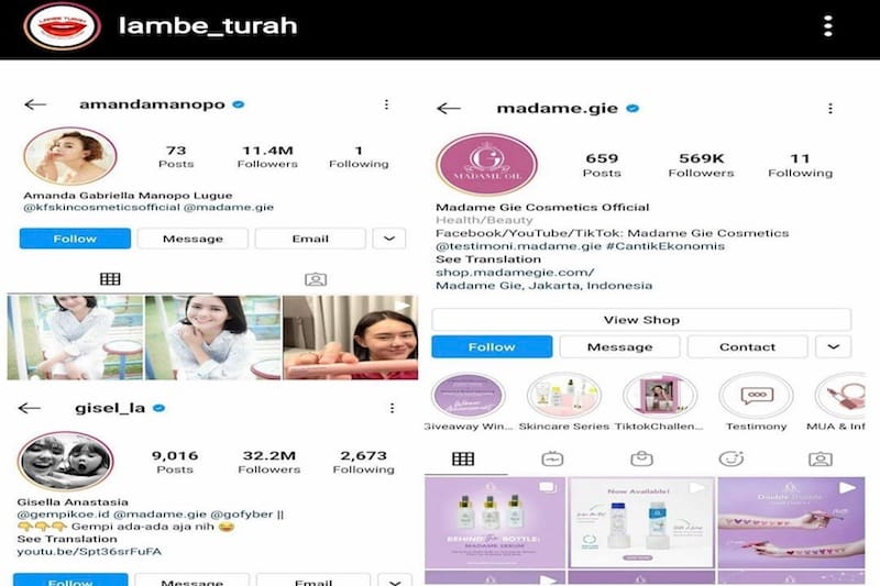 Yang pasti, akun Instagram @lambe_turah tercantum nama @madame.gie, yang ditulis oleh Amanda Manopo.