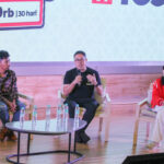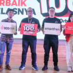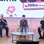 SUARAINDONEWS.COM, Jakarta-Video Content Creator, Arsal Bahtiar, Chief Marketing Officer Smartfren, Sukaca Purwokardjono, Chief Brand Officer Smartfren, Roberto Saputra, dan Kreator Digital & BA Onic Esports, Anisa Rahim, seusai konferensi pers peluncuran paket kuota 100 GB di Jakarta, Selasa (25/7/2023).