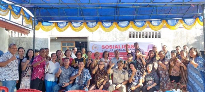 SUARAINDONEWS.COM, Ambon – Wakil Ketua DPD RI Nono Sampono, menggelar sosialisasi empat pilar kebangsaan (Pancasila, UUD 1945, NKRI dan Bhineka Tunggal Ika) kepada masyarakat Kelurahan Uritetu, Kecamatan Sirimau, Kota Ambon, Sabtu (25/03/2023).