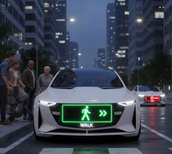 Saat mobil otonom makin populer, komunikasi antara kendaraan dan pedestrian jadi krusial. Selama ini, pengemudi dan pejalan kaki mengandalkan kontak mata atau gestur tangan. Namun, di mobil tanpa pengemudi, dibutuhkan solusi visual yang universal dan mudah dipahami.