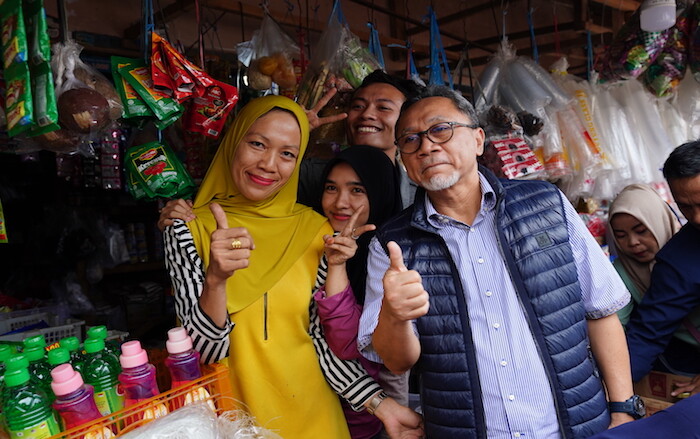 “Teman-teman lihat sendiri di pasar ini harga barang kebutuhan pokok masih di bawah harga acuan,” ujar Mendag Zulkifli Hasan.