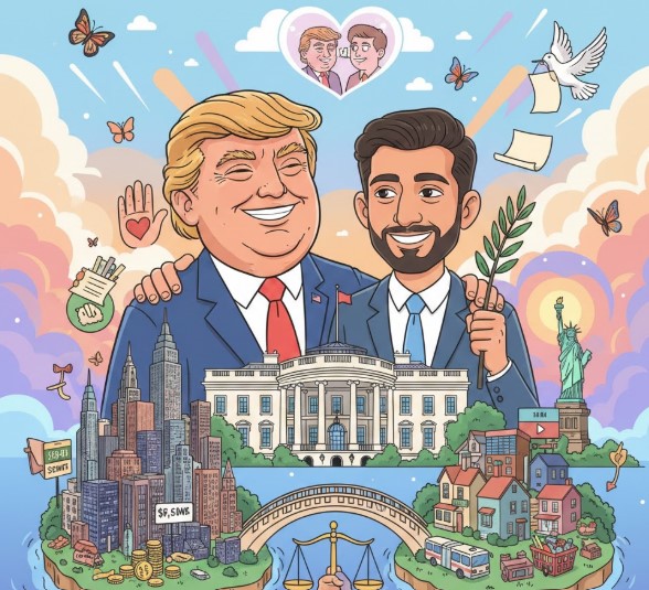Trump, miliarder Partai Republik berusia 79 tahun, dan Mamdani, politisi 34 tahun berhaluan sosialisme demokratis, sebelumnya berselisih mengenai banyak isu, mulai dari imigrasi hingga kebijakan ekonomi. Namun dalam pertemuan pertama mereka, keduanya tampak akrab. Mamdani berdiri di samping meja Trump saat konferensi pers, dan Trump bahkan menepuk lengannya dengan hangat, meski beberapa pekan lalu ia menyebut Mamdani sebagai “komunis” dan “radikal kiri gila”.