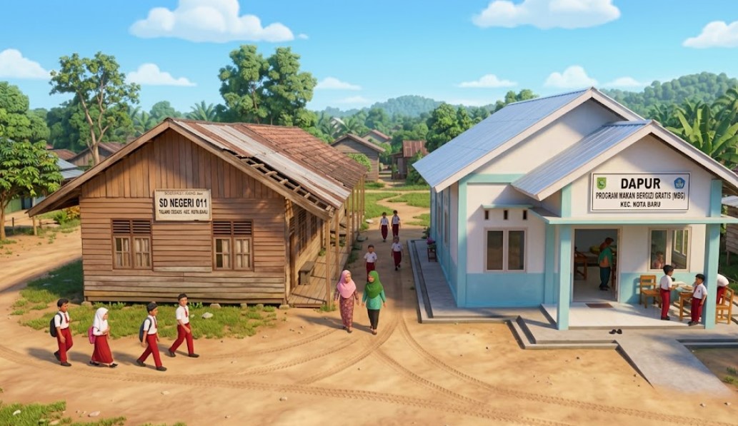 Dalam video yang beredar, tampak bangunan dapur MBG berdiri dengan kondisi yang dinilai lebih layak dibandingkan dengan gedung SD Negeri 011 Talang Gedabu yang berada tidak jauh dari lokasi tersebut. Sekolah tersebut terlihat lebih sederhana, memicu perbandingan tajam di kalangan warganet.