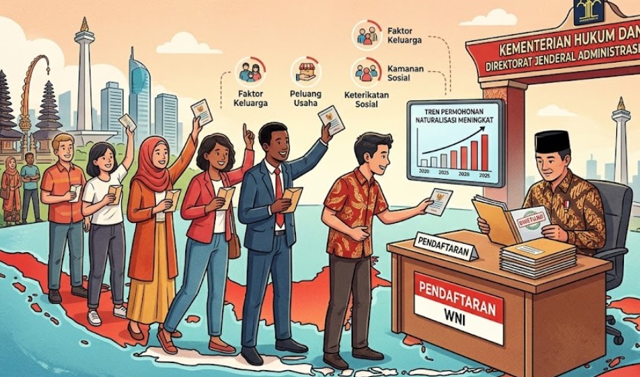 SUARAINDONEWS.COM, Jakarta — Minat warga negara asing (WNA) untuk menjadi warga negara Indonesia (WNI) tercatat meningkat dalam lima hingga enam tahun terakhir. Hal ini disampaikan oleh Kementerian Hukum dan Hak Asasi Manusia Republik Indonesia melalui Direktorat Jenderal Administrasi Hukum Umum (Ditjen AHU).